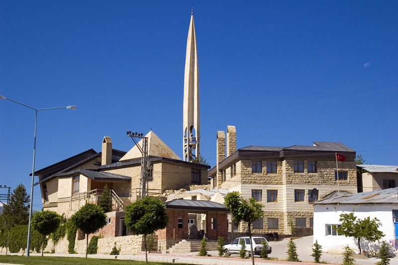Malatya’dan 90 km kadar sonra Balaban beldesinden geçerken yolun solundaki cami dikkatimizi çekti. Ülkemizde şimdiye kadar gördüğümüz camilerden oldukça farklı bir mimarisi vardı. Beş köşeli olan caminin, minaresi füzeye, kubbesi çadıra benziyordu. Öğrendiğimiz kadarı ile, Yıldırım Beyazıt döneminde yaşamış bir din adamı olan ve peygamber soyundan geldiği sanılan Abdurrahman-i Erzincani’nin ölümünden sonra mezarının bulunduğu yere yapılan cami zamanla harap olunca 1960 yılında yenilenmesine karar verilmiş. Mimar Şerif Ali Akkurt tarafından çizilen proje birebir uygulanmış. Caminin “beşgen” olması, İslam’ın 5 şartını, minarenin füzeye benzemesi, modern Türkiye’yi, kubbenin çadır şekli ise, altında toplanmayı, birlik ve beraberliği simgeliyormuş.