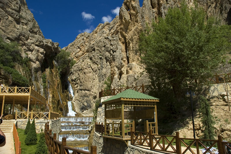 Balaban Beldesi’ni ardımızda bırakıp yolumuza devam ettik. Darende ilçesini geçtikten 3 km kadar sonra soldaki yola saparak 5 km kadar daha giderek Günpınar Şelalesi’ne ulaştık. Darende ilçesinin 10 km. batısında bulunan Tohma Çayı’nın kaynağından çıkan ve kayalar arasından yaklaşık 40 metreden düşen suların oluşturduğu şelale sıcak havada oldukça etkileyici bir görünüm sunuyordu. Şelalenin çevresi Malatya İl Özel İdaresince düzenlenmiş ve turizme açık bir mesire yerine dönüştürülmüş. Şelalenin oluşturduğu su zerrecikleri ile serinleyip, biraz dinlendikten sonra tekrar ana yola çıkarak Kayseri’ye yöneldik.