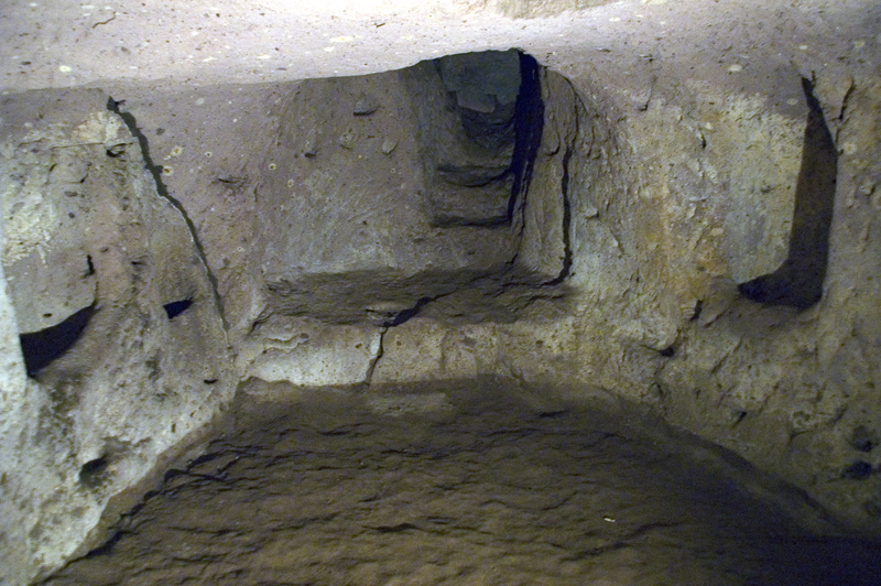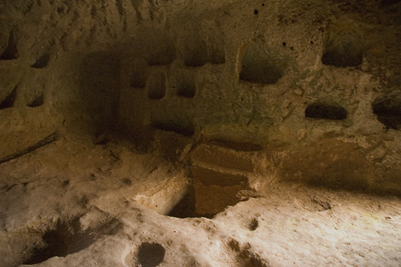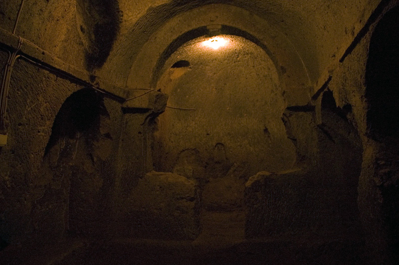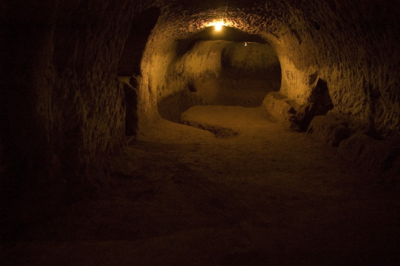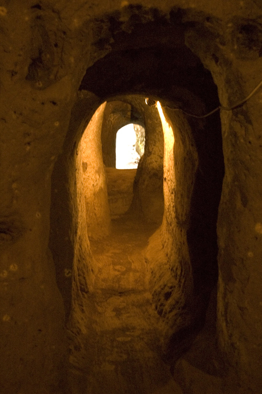 Ağırnas’taki ilk gezimizi, görevli Ahmet Bey’in nezaretinde ve rehberliğinde, Romalılar’dan kalan yeraltı şehrinde yaptık. Yerin altından 150 metre ilerleyerek şehrin halen açık bulunan ve taht odası, yemek salonu, tandır evi ile koridorlar ve ana giriş kapısından oluşan kısmını gördük. Kasabanın girişinde Aşağı Pınar mevkiinde bulunan ve bazı bölümlerinin yapılışının milattan önceye rastgeldiği ve daha sonraki yıllarda da çeşitli ilaveler yapıldığı söylenen yer altı şehrinin M.S.1-13. yüzyıllar arasında kullanıldığı tahmin ediliyormuş. Hemen hemen tüm yeraltı şehir ve mağaralarında olduğu gibi, burasının da yeraltında 120 km kadar devam ettiğine ve hatta Kapadokya’ya kadar uzandığına dair söylentiler burada da karşımıza çıkıyor.