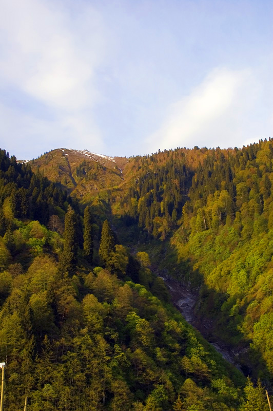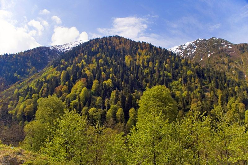 Ayder Yaylası’nın yukarı kısımlarında muhteşem bir doğa vardı. Yemyeşil Karadeniz ormanlarının arasında Kaçkarlar’ın karlı dorukları bir başka güzel görünüyordu.