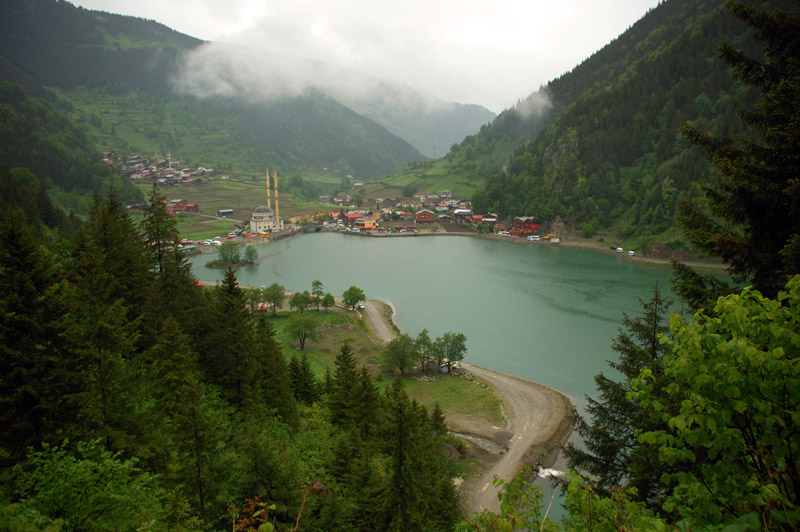 Uzungöl, Çaykara ilçesine bağlı bir belde. Beldeye adını veren göl ve çevresi ise Türkiye’nin doğa harikalarından biri. Beldeye girerken fotoğraflardaki o ince iki minareyi görüyorsunuz. Ondan sonra birden sisleri, yemyeşil dağları, pırıl pırıl suları ile olağanüstü güzel bir doğa sizi karşılıyor. Manzarayı seyrederken, yağmur ve bulutların oluşturduğu kasvetli havayı bile umursamaz oluyorsunuz. Yağmurun, göl yüzeyine düşen damlaları, inanılmaz güzel bir görüntü yaratıyor.