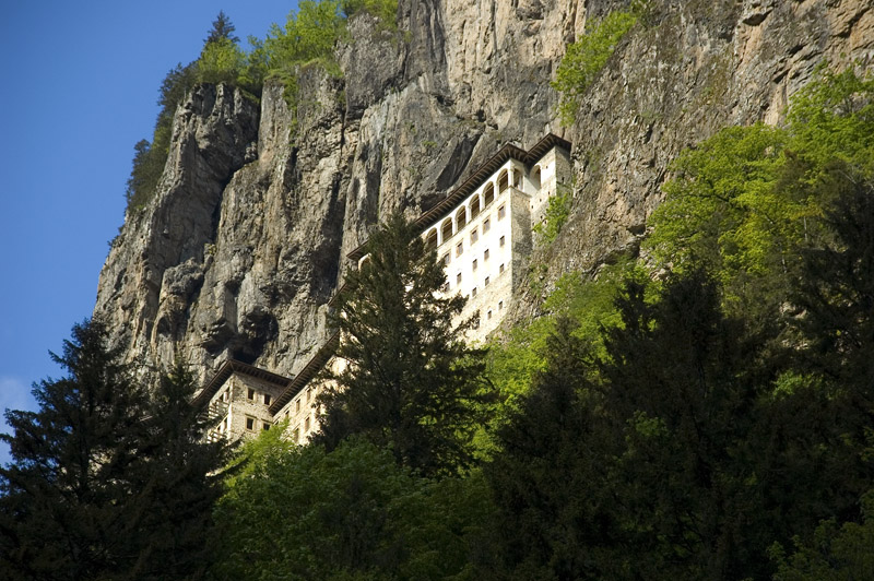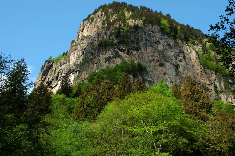 Dere kıyısındaki otoparktan Sümela Manastırının ve bulunduğu kayalık tepenin fotoğrafları çektik.