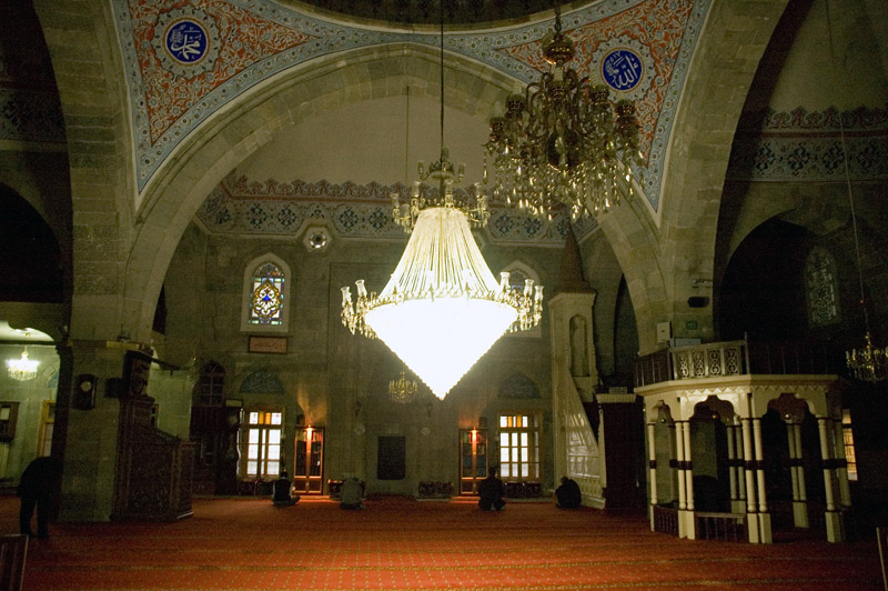 Yakutiye Medresesi’nden çıktığımızda, Bayburt civarında bıraktığımız yağmur Erzurum’a ulaşmıştı. Birden bardaktan boşanırcasına inen sağanaktan kaçmak için Lala Mustafa Camii’ne sığındık. Erzurum’daki ilk Osmanlı camisi olan Lala Mustafa Paşa Camii, Erzurum’un merkezini de oluşturuyormuş. Kıbrıs fatihi Lala Mustafa Paşa tarafından Erzurum’da Beylerbeyi olarak görev yaptığı sırada 1562 yılında yaptırılmış Mimar Sinan’ın eserlerinden olup, Mimar Sinan’ın İstanbul Şehzade Camii’ndeki gibi merkezi plan tipi ile inşa edilmiş. Henüz namaz vakti olmaması nedeniyle caminin içinden birkaç fotoğraf alma imkanımız oldu. Cami içerisinde çini, halı, şamdan ve hat örnekleri bulunuyor.