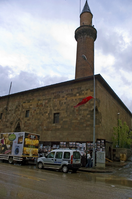 Yağmur dindikten sonra, Cumhuriyet Caddesini takip ederek Erzurum’un en eski camilerinden olan Ulucami’ye geldik. Ancak restorasyonda olduğu için caminin dışarıdan fotoğraflarını çekebildik. Cami Saltuklu Emiri Nasreddin Aslan Mehmet tarafından 1179 yılında yaptırılmış ve Saltuklulara Atabey ismi yakıştırıldığından, camiye Atabek Camii de deniliyormuş. Caminin sağ tarafında tuğladan yuvarlak gövdeli tek şerefeli minaresi bulunuyor.