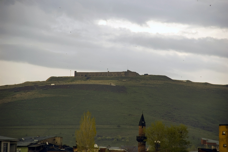 Dışarıdan görme imkanı bulduğumuz ve bir tepe üzerinde yer alan kale, 11. YY.’da Türklerin eline geçinceye kadar, çeşitli uygarlıklar arasında sık sık el değiştirmiş. Kalenin etrafında bulunan surlar, iç kaleye ait olup, dış kalenin surları ortadan kaybolmuş. Kaleyi dışarıdan gezerken, Saat Kulesi’de denilen Tepsi Minareyi’de surların ardından görebildik. Ancak havanın kararmış olması nedeniyle, zor koşullarda birkaç fotoğrafını çekebildik.