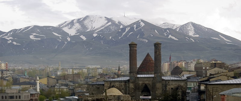 Abidenin altında yer alan çeşmenin buz gibi suyundan içtikten sonra, Kop Dağı’nı ardımızda bırakıp, virajları takip ederek Erzurum’a doğru inişe geçtik. 2007 yılındaki Doğu Ekspresi ile yaptığımız Kars gezisi sırasında trenden gördüğümüz Aşkale’yi bu kez karayolundan gördük. Saat 15.00 civarında Erzurum’a ulaşarak Öğretmenevi’ndeki rezervasyonumuzu kesinleştirdik. Arabamızı Öğretmenevi’nin otoparkına bırakarak, Erzurum gezimize başladık.