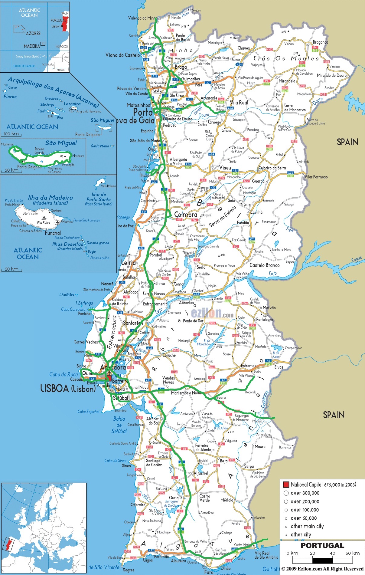Avrupa’nın güney batı ucundaki İber Yarımadasının batı tarafında Atlas Okyanusu kıyısında yer alan Portekiz, sadece İspanya ile komşudur. Azor Adaları ve Madeira Adaları Portekiz toprakları arasındadır. 2016 yılı tahminlerine göre toplam nüfusu 10,3 milyon kişiden oluşan ülkenin resmi dili Portekizcedir.