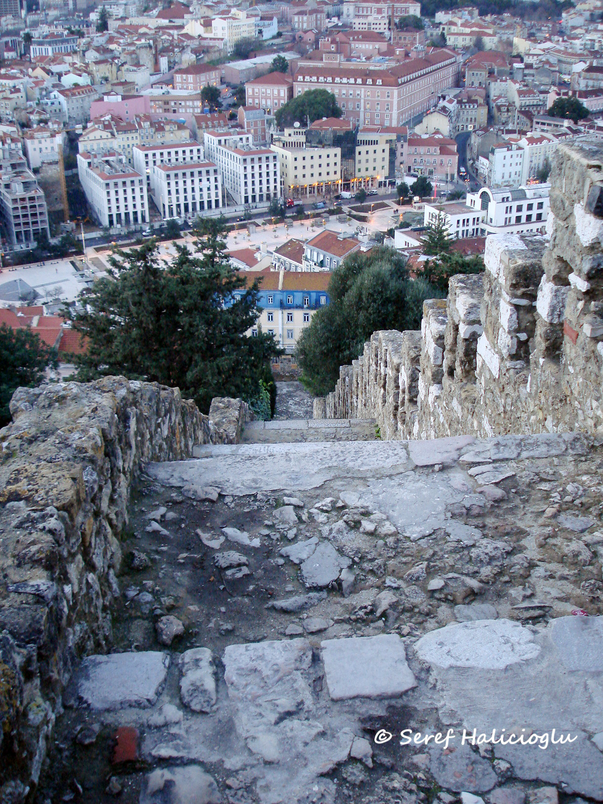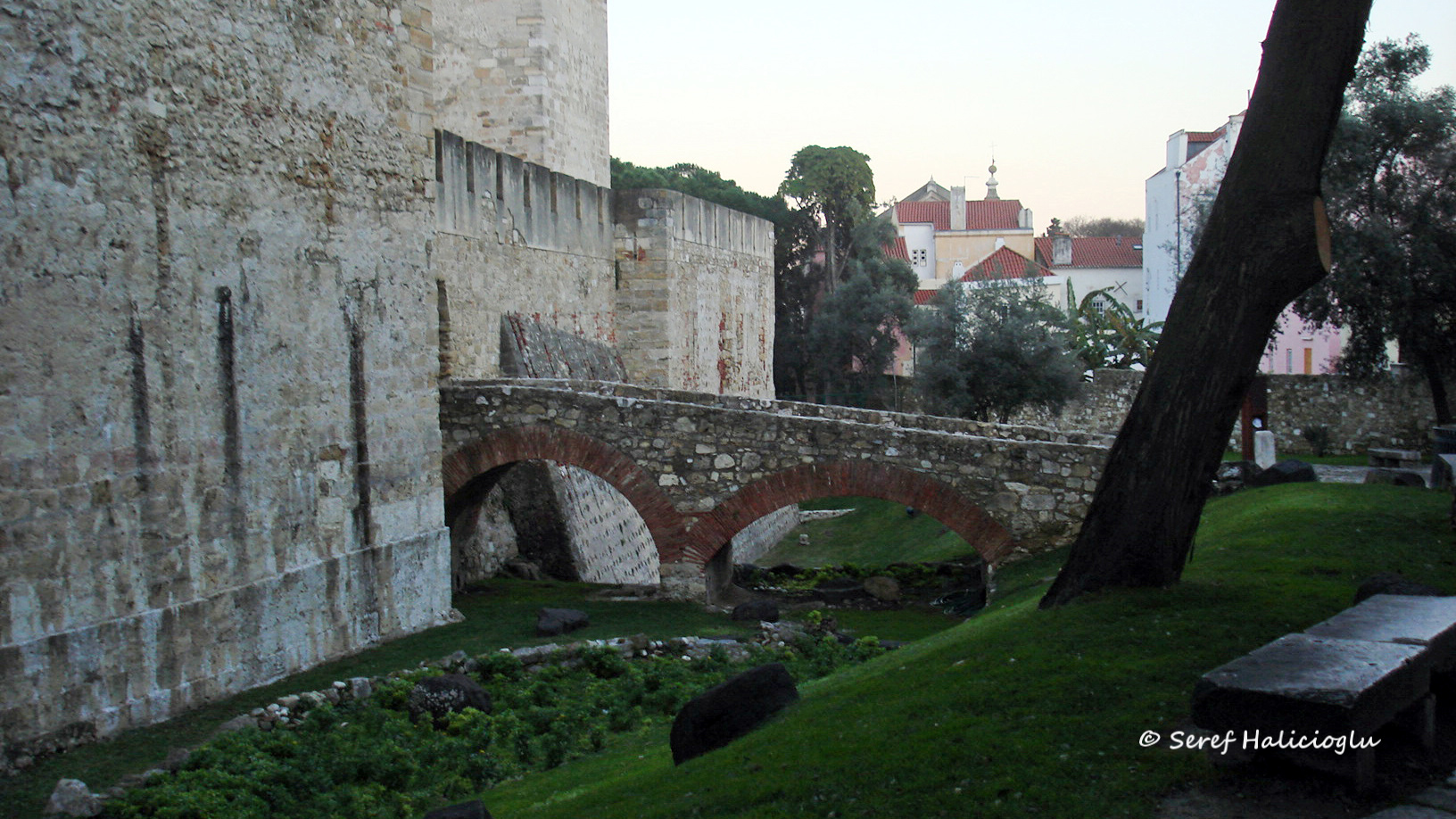 Şehrin en yüksek yerinde ve Alfama’nın hemen üzerinde bulunan kale tarihi şehir merkezine bakmaktadır. Arkeolojik araştırmalara dayanılarak kalenin yapım zamanı M.Ö.6.yy olarak tahmin edilmektedir. Kuzey Afrikalı Arap olan Mağribi işgalcilerden geri alındığı 1147 yılından sonra bir süre Kraliyet Sarayı olarak kullanılmış. Ancak şimdilerde sarayın çok az kısmının kalıntısı görülebiliyor. 1940 larda surların ve 18 burcunun yenileme çalışmaları yapılmıştır. Kalenin içinde Lizbon’un iki arkeoloji müzesinden biri bulunur. Diğeri Jeronimos Manastırı’nın yanındadır. Kale, özellikle gün batımına yakın Lizbon’un en güzel panoramik görüntülerinin alınabildiği yerlerden biridir. Giriş ücreti € 7. Lisbon’da yaşayanlar için ücretsizdir.