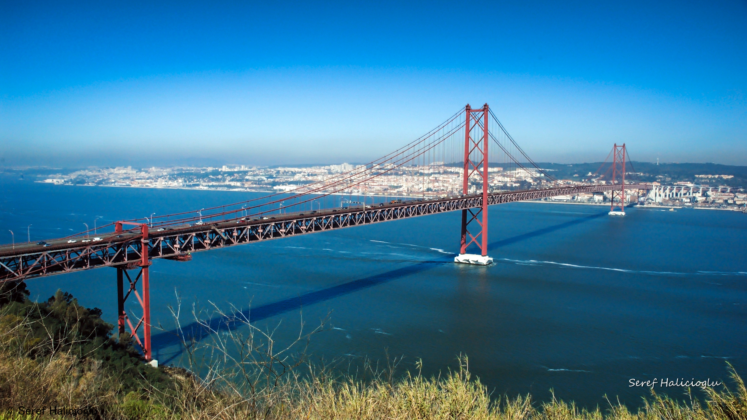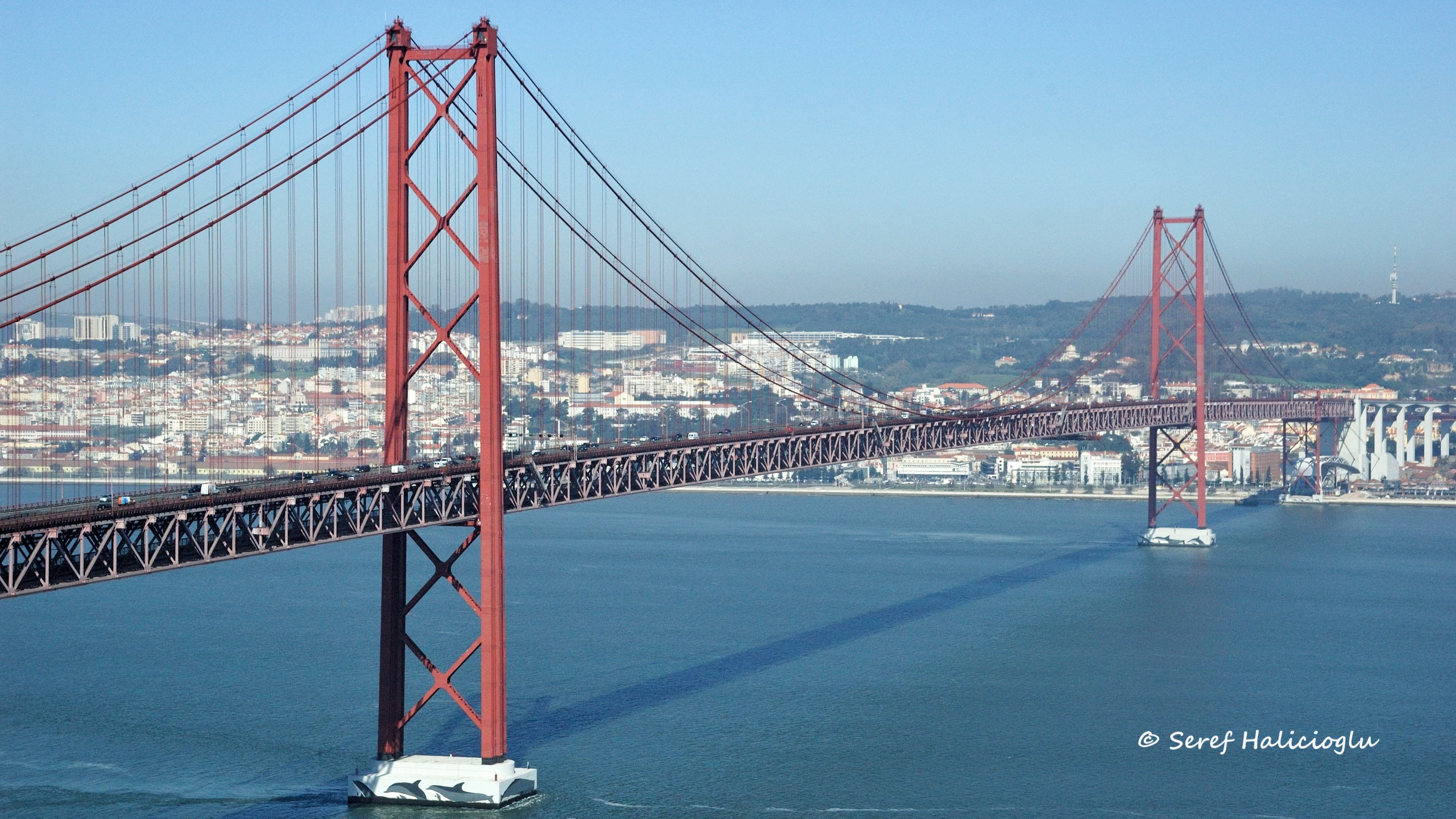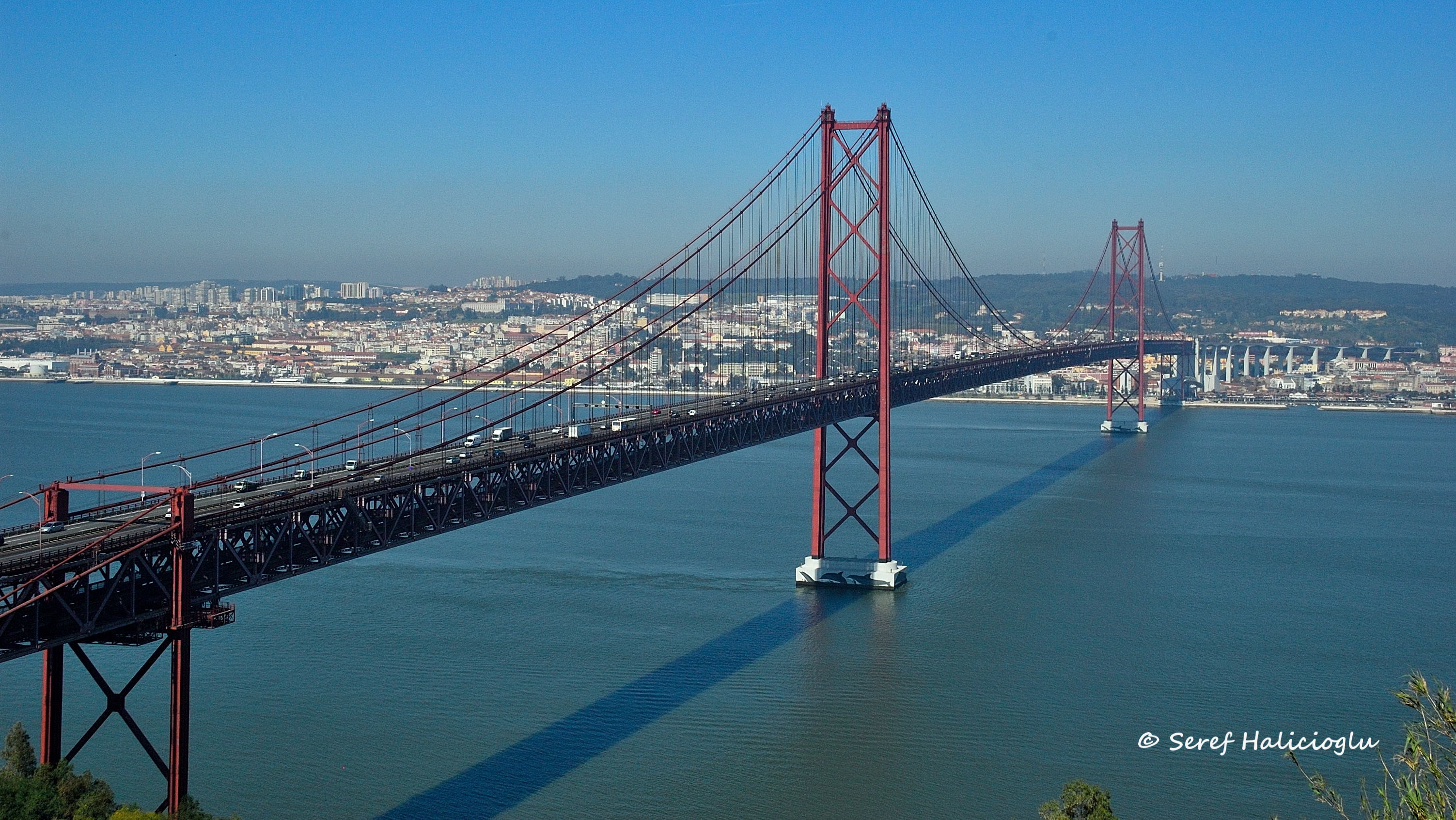 Lizbon’u Tagus nehrinin karşı kıyısındaki Almada ilçesine bağlayan ve San Fransisco’daki Golden Gate köprüsünün benzeri olan 70 metre yüksekliğindeki ve 2277 m uzunluğundaki köprü, Golden Gate köprüsünü de yapan American Bridge Company tarafından inşa edilmiş ve 6 Ağustos 1966 tarihinde hizmete açılmıştır. Karayolu araçları için 6 şerit, trenler için de 2 hat bulunan ve açılışı esnasında Salazar Körürü olarak adlandırılan köprünün adı, 1974 yılındaki Karanfil Devrimi sonrasında 25 Nisan Köprüsü olarak değiştirilmiştir.